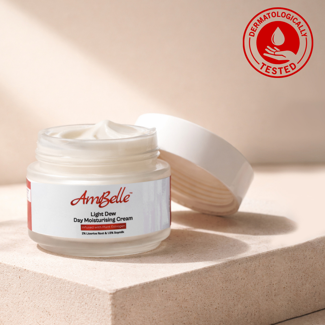 AmBelle Light Dew Day Moisturising Cream is infused with 2% Licorice Root & 1.5% Soymilk and enhanced with reliable moisturising ingredients like Olive, Hyaluronic Acid, Sweet Almond, Shea Butter, Aloe Vera and Squalane. Together, this potent combination delivers the double advantage of moisturisation and anti-aging.